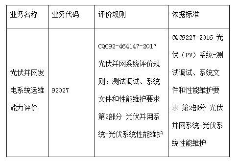 各相關(guān)單位:隨著我國光伏產(chǎn)業(yè)的迅猛發(fā)展,光伏并網(wǎng)發(fā)電系統(tǒng)(以下簡稱光伏系統(tǒng))裝機(jī)規(guī)模再創(chuàng)新高,截止到2017年上半年無論是存量還是新增光伏系統(tǒng)裝機(jī)容量均為全球第一,隨著裝機(jī)容量的增加,如何保證光伏系統(tǒng)安全穩(wěn)定運(yùn)行和投資回報(bào)收益越來越受到投資商、業(yè)主、金融保險(xiǎn)等相關(guān)方重視,而運(yùn)維能力的優(yōu)劣將直接影響光伏系統(tǒng)安全穩(wěn)定運(yùn)行、發(fā)電量、投資回報(bào)收益等諸多方面,因此如何科學(xué)有效評價(jià)光伏系統(tǒng)運(yùn)維能力就顯得尤為重要。 中國質(zhì)量認(rèn)證中心(CQC)現(xiàn)研發(fā)推出光伏并網(wǎng)系統(tǒng)運(yùn)維能力評價(jià)業(yè)務(wù),具體信息如下: ![]() CQC新能源產(chǎn)品認(rèn)證部已經(jīng)開始受理該產(chǎn)品的評價(jià)申請,企業(yè)可以通過CQC網(wǎng)站提交認(rèn)證申請,具體事宜請與產(chǎn)品認(rèn)證新能源部工程師聯(lián)絡(luò)。 聯(lián)系方式如下: 鄭向陽 010-83886498/13785626530; 董紅言010-83886570/18518309810; 石磊 010-83886374/18611580550。 中國質(zhì)量認(rèn)證中心