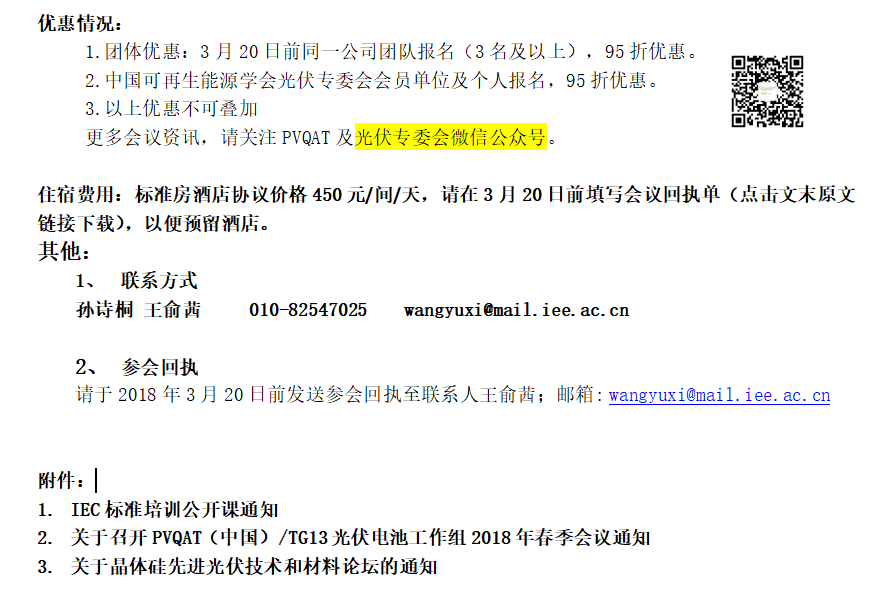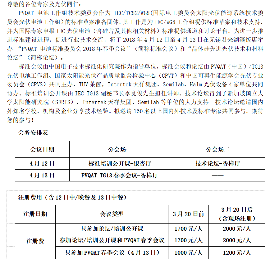 【標(biāo)準(zhǔn)會(huì)議】“PVQAT 電池標(biāo)準(zhǔn)委員會(huì)2018年春季會(huì)議”暨“晶體硅先進(jìn)光伏技術(shù)和材料論壇” 總通知