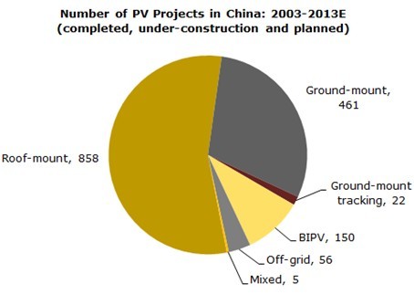 圖一、中國不同光伏應(yīng)用領(lǐng)域的光伏項目數(shù)量