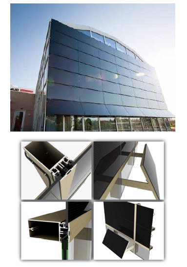 一、平屋頂BIPV和彎曲屋頂BIPV 該報(bào)告對(duì)于平屋頂和彎曲屋頂?shù)腂IPV描述并無(wú)特別之處,和斜屋面類似,也是分成了五類,這里就不贅述了。 ![]() 平屋頂 BIPV ![]() 彎曲屋頂 BIPV 二、幕墻BIPV 報(bào)告中將幕墻BIPV劃分為以下幾類: 1.普通幕墻BIPV 類似于普通的花崗巖或者大理石,這些太陽(yáng)能板被安裝在建筑物的外立面。通常為了通風(fēng)和保溫,在安裝時(shí)會(huì)在太陽(yáng)能板與建筑之間留有一定空隙。 該報(bào)告收錄了以下幾家公司普通幕墻BIPV產(chǎn)品:德國(guó)Soltecture公司,德國(guó)的Schuco公司,芬蘭的Ruuki公司,奧地利的Ertex Solar公司,奧地利的MGT-eys公司,美國(guó)的Bisem公司。這些公司使用的技術(shù)不盡相同,產(chǎn)品也各有特色。德國(guó)的兩家公司采用的是 a-Si技術(shù)。MGT-eys公司采用的是c-Si技術(shù)。 ![]() Bisem公司BIPV ![]() Schuco公司BIPV 2.透明幕墻BIPV 半透明BIPV組件是利用激光技術(shù)對(duì)普通非晶硅電池組件表面進(jìn)行處理,使其達(dá)到良好的透光效果。這篇報(bào)道中介紹的生產(chǎn)透明幕墻BIPV的廠家中,有兩家來(lái)自中國(guó)(原文如此,報(bào)告中并未提及具體廠家名稱)。他們是使用c-Si技術(shù)的SunTech 公司和使用a-Si技術(shù)的Smile Solar公司。 ![]() SunTech 公司BIPV 3.天窗BIPV 這類天窗既可采光發(fā)電,又可為建筑物遮陽(yáng)或遮風(fēng)擋雨。在該篇報(bào)道中,德國(guó)Solarnova公司的活動(dòng)式天窗最吸引人的注意。這種BIPV天窗可自動(dòng)跟蹤太陽(yáng)的角度,使得建筑能夠獲得最合理的日照并產(chǎn)生能量。 ![]() Solarnova公司BIPV |