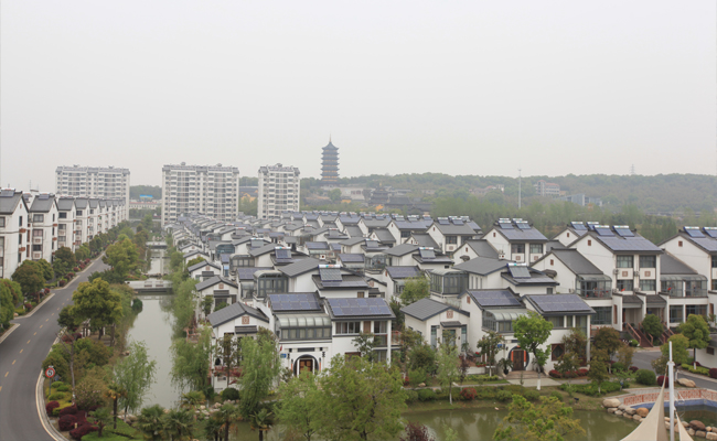 參選理由 本項(xiàng)目是江蘇省經(jīng)濟(jì)和信息化委員會(huì)結(jié)合社會(huì)主義新農(nóng)村建設(shè),推動(dòng)光伏產(chǎn)業(yè)應(yīng)用的示范項(xiàng)目,是江蘇省首個(gè)兆瓦級(jí)小區(qū)分布式光伏電站。 項(xiàng)目利用山泉村集中居住區(qū)10000平米建筑屋頂,安裝太陽能光伏組件,將光伏應(yīng)用與新農(nóng)村建設(shè)完美結(jié)合。 項(xiàng)目展示