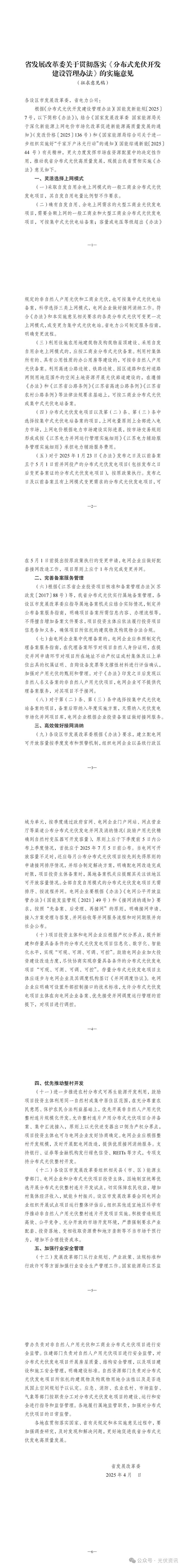 綜合媒體報道:近日,江蘇省發(fā)改委發(fā)布了關于貫徹落實《分布式光伏開發(fā)建設管理辦法》的實施意見(征求意見稿),就分布式光伏最新管理辦法征求光伏行業(yè)的相關意見。意見稿指出:可以靈活選擇上網模式,完善備案服務管理,高效做好接網消納,優(yōu)先推動整村開發(fā),各部門應當加強行業(yè)安全管理。 意見稿要點如下: