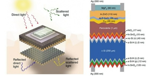 ![]() 據(jù)英國《自然·能源》雜志近日發(fā)表的最新研究,一組國際聯(lián)合團(tuán)隊報告成功制造了鈣鈦礦/硅雙層單片電池。在室外條件下,雙面串聯(lián)太陽能電池實(shí)現(xiàn)超出任何商用硅太陽能電池板的效率。這也是首次通過實(shí)驗(yàn)清晰證明了雙面串聯(lián)裝置效能優(yōu)越的證據(jù)。 鈣鈦礦太陽能電池,是利用鈣鈦礦型的有機(jī)金屬鹵化物半導(dǎo)體作為吸光材料的第三代太陽能電池,具有成本低廉、光電轉(zhuǎn)換效率高、商業(yè)潛力巨大等讓人無法忽視的特點(diǎn)。 此次研究團(tuán)隊分析了在各種真實(shí)光照和反照率條件下,想要獲得最佳電流匹配所需的鈣鈦礦帶隙。研究中新的雙面串聯(lián)太陽能電池,其主體由硅層和鈣鈦礦層構(gòu)成,同時還結(jié)合了許多其他化合物,由于最終采用了較窄的鈣鈦礦帶隙,具有透明背電極的器件結(jié)構(gòu)依賴于反照率來增強(qiáng)底部電池中的電流產(chǎn)生,增強(qiáng)了鈣鈦礦頂部電池中的電流產(chǎn)生。 團(tuán)隊進(jìn)而首次報告了在單面AM1.5G(太陽能轉(zhuǎn)換系統(tǒng)標(biāo)準(zhǔn)測試的參考光譜)陽光的照射下,經(jīng)認(rèn)證的功率轉(zhuǎn)換效率大于25%的雙面串聯(lián)配置,在戶外實(shí)驗(yàn)場下,發(fā)電密度高達(dá)26mWcm-2的結(jié)果。對暴露在不同反照率下的性能進(jìn)行比較后,研究團(tuán)隊得出了雙面單片鈣鈦礦/硅串列太陽能電池利用環(huán)境中的漫反射光反照率,其性能優(yōu)于單面鈣鈦礦/硅串列太陽能電池的結(jié)論。 研究人員表示,串聯(lián)裝置的復(fù)雜性,正是這次最主要的挑戰(zhàn),此次研究涉及14種材料,其中每一種材料都必須進(jìn)行所謂“完美優(yōu)化”。 盡管常規(guī)串聯(lián)的太陽能電池也可以通過吸收額外波長的光轉(zhuǎn)化為電能,但此次科學(xué)家們證明:使用雙面串聯(lián)配置,可以超過目前公認(rèn)的串聯(lián)配置的性能極限。這種利用傳統(tǒng)硅基層和鈣鈦礦制成的另一層串聯(lián)組合的新系統(tǒng),不但可以搜集到更多的能量,還可以捕獲許多原本被浪費(fèi)掉的、從地面反射和散射的光,前所未有地增加串聯(lián)太陽能電池的效能。 |