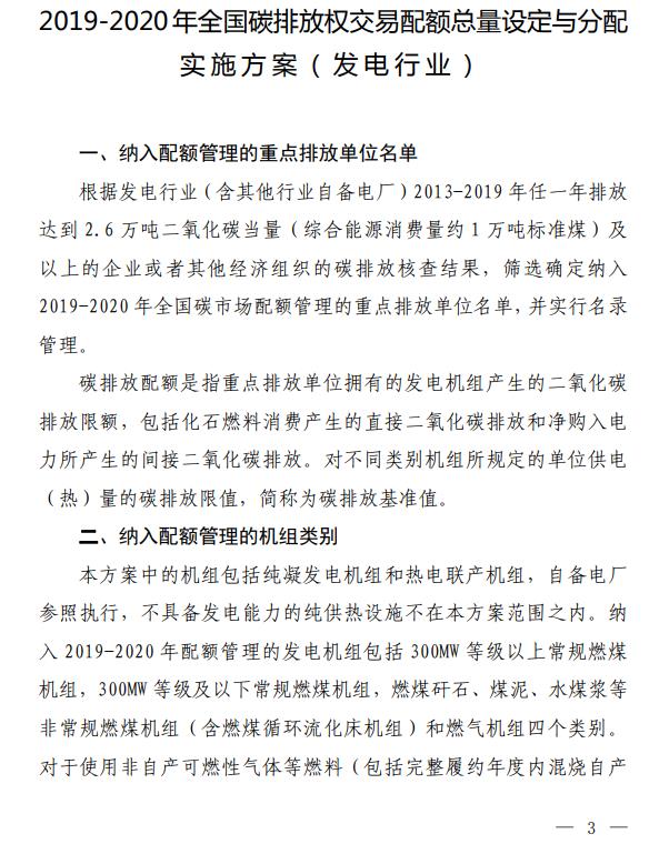 12月30日,生態(tài)環(huán)境部發(fā)布關(guān)于印發(fā)《2019-2020年全國碳排放權(quán)交易配額總量設(shè)定與分配實施方案(發(fā)電行業(yè))》《納入2019-2020年全國碳排放權(quán)交易配額管理的重點排放單位名單》并做好發(fā)電行業(yè)配額預(yù)分配工作的通知。根據(jù)通知,發(fā)電行業(yè)2019-2020碳排放權(quán)分配實施方案確定。對于使用非自產(chǎn)可燃性氣體等燃