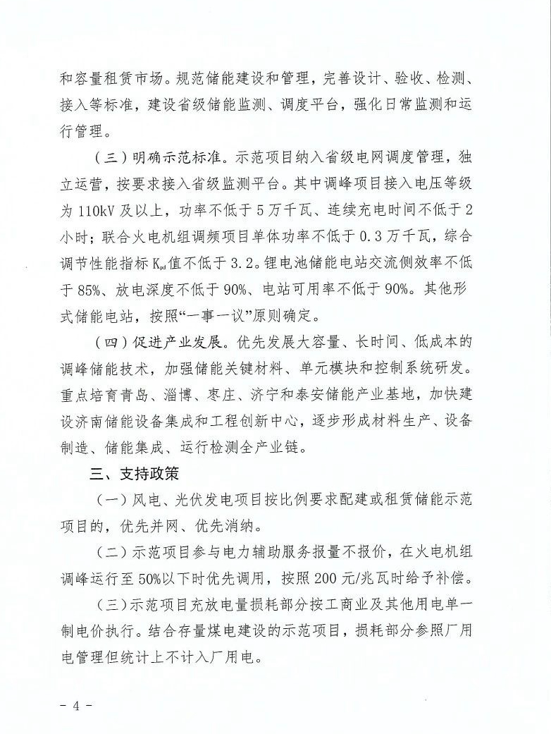 日前,山東省發(fā)展和改革委員會(huì)、山東省能源局、國(guó)家能源局山東監(jiān)管辦公室聯(lián)合印發(fā)了《關(guān)于開展儲(chǔ)能示范應(yīng)用的實(shí)施意見》的通知,要求各地加快推動(dòng)儲(chǔ)能發(fā)展,提升電力系統(tǒng)調(diào)節(jié)能力,促進(jìn)新能源消納和能源結(jié)構(gòu)優(yōu)化調(diào)整,構(gòu)建清潔低碳、安全高效的現(xiàn)代能源體系。 通知明確,新增集中式風(fēng)電、光伏發(fā)電項(xiàng)目,原則上按照不低于10%比例配建或租賃儲(chǔ)能設(shè)施,連續(xù)充電時(shí)間不低于2小時(shí)。 通知如下: ![]() ![]() ![]() ![]() ![]() |