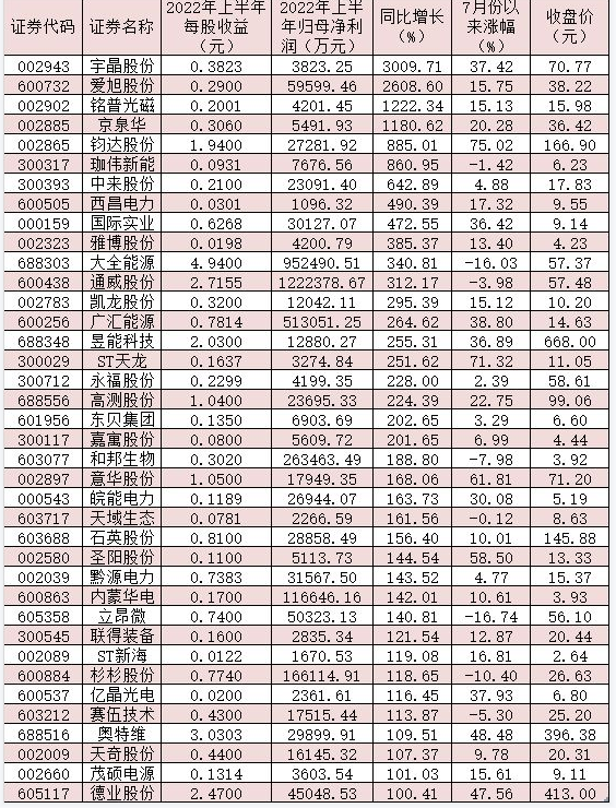 8月24日晚間,“光伏茅”隆基綠能發(fā)布2022年半年報(bào)顯示,公司上半年實(shí)現(xiàn)營業(yè)收入504.17億元,同比增長43.64%;實(shí)現(xiàn)歸母凈利潤64.81億元,同比增長29.79%。同日,TCL中環(huán)也公布2022年半年報(bào)顯示,今年上半年,公司營收和凈利潤均創(chuàng)新高,其中,營業(yè)收入316.98億元,同比增長79.65%;歸母凈利潤29.17億元,同比增長92.1%。 同花順數(shù)據(jù)顯示,截至8月25日收盤,已有165家光伏行業(yè)上市公司披露了2022年上半年業(yè)績,103家公司上半年實(shí)現(xiàn)歸母凈利潤同比增長,占比逾六成。其中,38家公司上半年實(shí)現(xiàn)歸母凈利潤同比翻番。 對(duì)此,接受《證券日?qǐng)?bào)》記者采訪的川財(cái)證券首席經(jīng)濟(jì)學(xué)家、研究所所長陳靂表示,“今年上半年光伏行業(yè)盈利強(qiáng)勁,主要系國內(nèi)政策端全面向好,疊加歐洲市場需求持續(xù)旺盛,光伏裝機(jī)規(guī)模持續(xù)提升。當(dāng)前光伏行業(yè)需求端和供給端趨勢共振,行業(yè)整體景氣向上明確。需求端,國內(nèi)地面電站項(xiàng)目建設(shè)進(jìn)程加速,分布式裝機(jī)需求延續(xù)火爆,疊加海外裝機(jī)需求持續(xù)旺盛。供給端,硅料產(chǎn)能逐步提升且價(jià)格趨于高位平穩(wěn),疊加電池新技術(shù)產(chǎn)能逐步進(jìn)入加速投放期。在國內(nèi)外光伏裝機(jī)需求持續(xù)旺盛的背景下,產(chǎn)業(yè)鏈有望實(shí)現(xiàn)量利齊升! 165家光伏公司上半年研發(fā)投入增長近三成 今年上半年,光伏行業(yè)上市公司研發(fā)投入力度大,研發(fā)投入較高的企業(yè)未來成長后勁十足。統(tǒng)計(jì)發(fā)現(xiàn),上述165家公司今年上半年研發(fā)投入合計(jì)為176.42億元,同比增長28.83%。其中,22家公司上半年研發(fā)投入同比增長均超100%。 今年上半年,我國光伏產(chǎn)業(yè)總體實(shí)現(xiàn)高速增長,產(chǎn)業(yè)鏈主要環(huán)節(jié)保持強(qiáng)勁發(fā)展勢頭。據(jù)中國光伏行業(yè)協(xié)會(huì)公布的數(shù)據(jù)顯示,上半年,我國光伏發(fā)電新增裝機(jī)30.88GW,同比增長137.4%。全國主要發(fā)電企業(yè)電源工程完成投資2158億元,其中太陽能發(fā)電投資占比近30%。 近年來,隨著我國相關(guān)技術(shù)水平不斷進(jìn)步,以及國內(nèi)企業(yè)規(guī);a(chǎn)能力增強(qiáng),我國光伏組件生產(chǎn)企業(yè)在國際市場中的競爭優(yōu)勢逐漸擴(kuò)大,光伏組件出口規(guī)模也呈穩(wěn)步擴(kuò)大態(tài)勢。據(jù)中國光伏行業(yè)協(xié)會(huì)公布的數(shù)據(jù)顯示,今年上半年,國內(nèi)光伏產(chǎn)品出口總額約259億美元,同比增長113%。其中,光伏組件出口量為78.6GW,同比增長74.3%;組件出口額220.2億美元,同比增長超過一倍。 可以看到,光伏行業(yè)上市企業(yè)非常重視科技創(chuàng)新,相關(guān)企業(yè)研發(fā)投入力度逐年上升,2019年、2020年、2021年合計(jì)研發(fā)投入總額分別為944.81億元、1122.02億元、1529.68億元,2021年合計(jì)研發(fā)投入總額較2019年增長61.90%。 海通證券表示,當(dāng)前行業(yè)的核心點(diǎn)在于需求增長,競爭是次要矛盾。光伏行業(yè)的投資邏輯始終是需求>供給,各個(gè)環(huán)節(jié)每年總有新企業(yè)、新技術(shù)、新產(chǎn)能進(jìn)入,重要的還是行業(yè)持續(xù)成長性,2022年—2023年行業(yè)需求分別為250GW、350GW,到2025年可能達(dá)到500GW—600GW,到2030年將達(dá)到甚至超過1000GW。 超七成概念股7月份以來實(shí)現(xiàn)上漲 從市場表現(xiàn)來看,上述165只光伏概念股7月份以來股價(jià)表現(xiàn)亮眼,有117只概念股期間股價(jià)實(shí)現(xiàn)上漲,占比逾七成。其中,*ST中潛、日出東方、祥鑫科技等3只概念股期間股價(jià)實(shí)現(xiàn)翻番,佛燃能源、鈞達(dá)股份、英威騰、ST天龍等4只概念股期間累計(jì)漲幅也均超70%,表現(xiàn)搶眼。 對(duì)于光伏板塊的投資機(jī)會(huì),排排網(wǎng)旗下融智投資基金經(jīng)理助理劉寸心對(duì)記者表示,看好光伏板塊下半年投資機(jī)會(huì):首先,用電量大幅增長以及雙碳背景下,新能源替代傳統(tǒng)能源的趨勢已然形成,光伏等新能源發(fā)展勢不可擋,同時(shí)也獲得了政策的大力扶持;其次,下半年硅料新增產(chǎn)能會(huì)逐步釋放,有助于降低光伏的裝機(jī)成本,帶動(dòng)光伏的裝機(jī)需求增長;其三,我國是光伏組件出口大國,美國的《通脹削減法案》以及天然氣價(jià)格上漲會(huì)帶動(dòng)海外光伏裝機(jī)需求增長,利好我國光伏組件出口。 華輝創(chuàng)富投資總經(jīng)理袁華明表示,地緣沖突提升了歐美等海外國家光伏需求,今年上半年光伏需求增長超預(yù)期。另外,中國具備全球最完備的光伏產(chǎn)業(yè)鏈體系,出現(xiàn)了一批具備全球競爭力的頭部企業(yè),相關(guān)企業(yè)景氣度較高,上半年業(yè)績超預(yù)期龍頭品種值得關(guān)注。 ![]() 表:今年上半年歸母凈利潤同比增長超100%的光伏公司