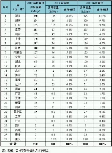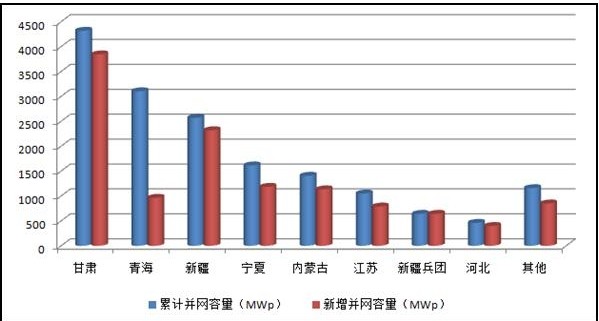 圖1 2013年底主要。▍^(qū))并網(wǎng)光伏電站情況