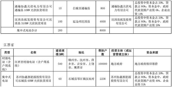 為貫徹落實(shí)中共中央國(guó)務(wù)院關(guān)于打贏脫貧攻堅(jiān)戰(zhàn)的決定和中央扶貧工作會(huì)議精神,加快推進(jìn)光伏扶貧工程建設(shè),我們組織各地區(qū)編制了光伏扶貧實(shí)施方案。經(jīng)對(duì)各地區(qū)報(bào)送實(shí)施方案中各項(xiàng)目的基本條件進(jìn)行審核,現(xiàn)將近期具備建設(shè)條件的第一批項(xiàng)目予以下達(dá),并將有關(guān)要求通知如下......