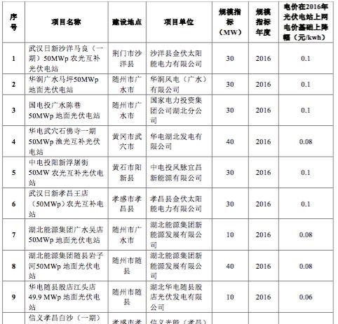 湖北省2016年普通光伏電站規(guī)模指標分配計劃表 ![]() ![]() |