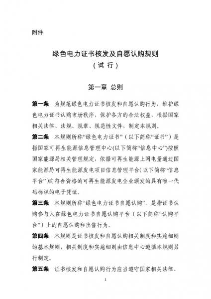 可再生能源綠色電力證書核發(fā)及自愿認(rèn)購交易正式試行(附全文)
