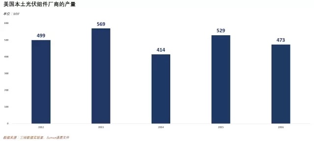 3. 美國光伏行業(yè)有多慘 2016年,美國的新增裝機量接近15GW,就增量來說,全球排名第二。 ![]() 同期,美國本土組件工廠的產(chǎn)量只有0.5GW。 ![]() 也就是說,超過95%的需求是由國外工廠的產(chǎn)量來滿足,本土廠商的產(chǎn)能利用率只有30%出頭。 ![]() 2012 - 2016年之間,美國至少有8家晶硅電池/光伏廠商倒閉,所以在Suniva向USITC提交的請愿陳述中,公司悲切地說道: