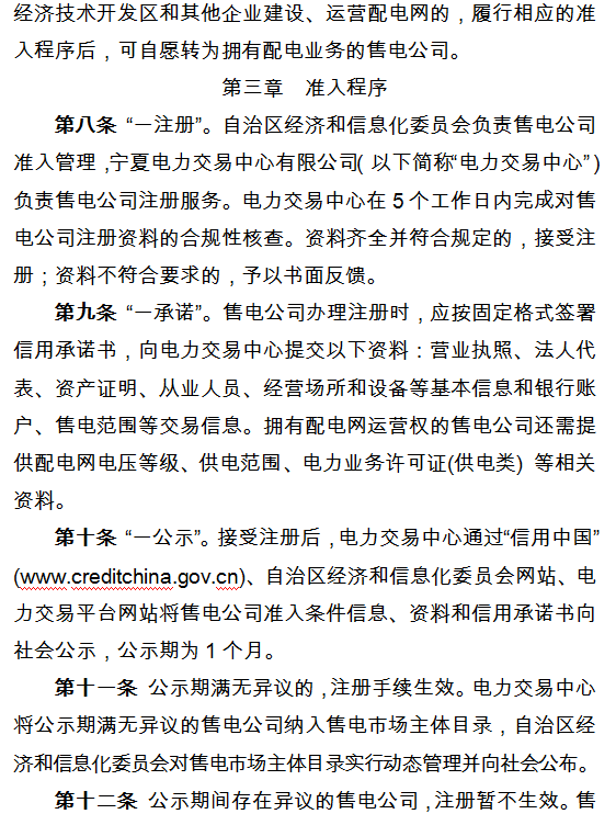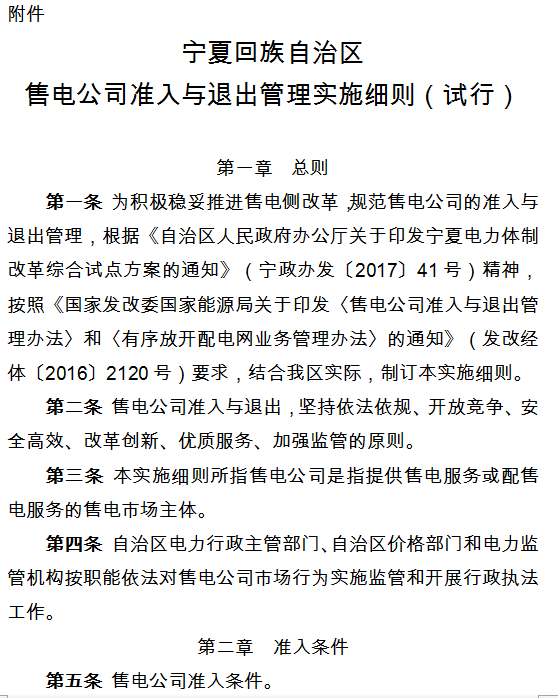 寧夏售電公司準(zhǔn)入與退出管理實(shí)施細(xì)則(試行)