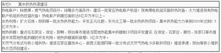 3.打造智能高效的能源系統(tǒng)。 增強(qiáng)需求側(cè)響應(yīng)能力。大力推廣分布式能源、智能微網(wǎng)等新型用能方式。實施“能效電廠”“能效儲氣庫”建設(shè)工程,推行峰谷電價、可中斷電價等價格制度,完善合同能源管理等市場化機(jī)制,鼓勵終端用戶主動參與調(diào)峰、錯峰。 推動供用能終端集成優(yōu)化。以滿足多樣化用能需求為導(dǎo)向,統(tǒng)籌建設(shè)電力、熱力、燃?xì)、供冷等設(shè)施,推動能源生產(chǎn)耦合、互補(bǔ)利用。在新建城鎮(zhèn)、工業(yè)園區(qū)、居民住宅區(qū)、大型公用設(shè)施、商務(wù)區(qū)等新增用能區(qū)域,推廣實施終端集成能源工程。在既有工業(yè)園區(qū)等用能區(qū)域,積極推進(jìn)余熱、余壓、余能等綜合利用。 積極發(fā)展“互聯(lián)網(wǎng)+”智慧能源。推進(jìn)互聯(lián)網(wǎng)、信息技術(shù)與能源產(chǎn)業(yè)深度融合,實施能源生產(chǎn)和利用設(shè)施智能化改造,構(gòu)筑產(chǎn)、儲、輸、用協(xié)調(diào)互動以及空間區(qū)域互聯(lián)互濟(jì)的智慧能源體系。加快發(fā)展智能電網(wǎng),提高電網(wǎng)與發(fā)電側(cè)、需求側(cè)交互響應(yīng)能力。推進(jìn)煤、油、氣等生產(chǎn)端智能化建設(shè),實施輸配設(shè)施、用能設(shè)施、計量設(shè)施、信息系統(tǒng)等數(shù)字化改造,推動智能樓宇、工廠、小區(qū)等能源微網(wǎng)、局域網(wǎng)建設(shè)。統(tǒng)籌能源與通信、交通等基礎(chǔ)設(shè)施建設(shè),增強(qiáng)能源產(chǎn)、儲、輸、用互聯(lián)基礎(chǔ)。 。┙ㄔO(shè)優(yōu)質(zhì)高效服務(wù)體系,推進(jìn)能源惠民共享。 1.大力發(fā)展集中供熱。在縣以上城區(qū)及重點鎮(zhèn)等熱負(fù)荷集中區(qū),優(yōu)先發(fā)展集中供熱。發(fā)展熱電聯(lián)產(chǎn)。加快邢臺、廊坊等熱電聯(lián)產(chǎn)項目建設(shè),確保2018年供暖季前全部投產(chǎn)。對現(xiàn)役純凝燃煤發(fā)電機(jī)組實施供熱改造,力爭2020年具備條件機(jī)組全部實現(xiàn)熱電聯(lián)產(chǎn)。實施熱電聯(lián)產(chǎn)機(jī)組供熱挖潛改造,完善配套熱網(wǎng)建設(shè),擴(kuò)大供熱能力。以統(tǒng)籌多種集中供熱方式為前提,按照熱負(fù)荷落實、燃煤等量替代、清潔高效利用原則建設(shè)一批燃煤背壓熱電機(jī)組。熱電聯(lián)產(chǎn)供熱能力達(dá)6億平方米。加快余熱供暖。緊密結(jié)合循環(huán)利用工程,充分利用工業(yè)企業(yè)余熱資源,建設(shè)一批余熱集中供熱設(shè)施。推廣余熱供熱先進(jìn)模式,建設(shè)一批示范工程。到2020年全省余熱供暖面積達(dá)到2.5億平方米以上。科學(xué)開發(fā)地?zé)。加?qiáng)地?zé)豳Y源勘探,制訂科學(xué)合理利用規(guī)劃,保障地?zé)峁┡行虬l(fā)展。發(fā)揮示范帶動作用,推廣先進(jìn)經(jīng)驗,探索建立集供暖、制冷、種養(yǎng)殖、溫泉休閑度假等為一體的地?zé)衢_發(fā)模式。推動有條件的城鎮(zhèn)地區(qū)優(yōu)先發(fā)展地?zé)峒泄┡,“十三五”期間全省地?zé)峁┡娣e新增1.3億平方米。發(fā)展新型熱源。適度建設(shè)大型燃?xì)鉄犭、燃(xì)忮仩t等集中供熱工程,示范推廣電蓄熱鍋爐、空氣源熱泵等集中供熱設(shè)施。依托大型公用建筑、商業(yè)設(shè)施、開發(fā)區(qū)、居民區(qū)等,建設(shè)一批樓宇式或區(qū)域分布式燃?xì)夤峁こ獭:侠聿季稚镔|(zhì)熱電聯(lián)產(chǎn),支持發(fā)展醇基燃料等生物質(zhì)供熱鍋爐。加快核小堆項目前期工作,力爭國家首個示范項目落地我省。 ![]() 2.加快推進(jìn)農(nóng)村清潔取暖。因地制宜實施集中供熱、氣代煤、電代煤、可再生能源“四個替代”,到2020年全省農(nóng)村清潔取暖率達(dá)到70%以上。推動城區(qū)集中供熱熱源向周邊村鎮(zhèn)延伸覆蓋,推進(jìn)有條件的村鎮(zhèn)實施集中供熱工程。以平原區(qū)域農(nóng)村為重點,按照“宜氣則氣、宜電則電”的原則,在落實氣源的前提下有規(guī)劃的推進(jìn)氣代煤、電代煤,到2020年完成600萬戶。支持利用地?zé)崮、生物質(zhì)能、風(fēng)能、太陽能等可再生能源取暖,打造多模式試點示范工程,構(gòu)筑多元化清潔取暖格局。突出農(nóng)作物秸稈、生活垃圾、畜禽糞便等能源化利用,發(fā)展生物質(zhì)、垃圾發(fā)電,建設(shè)沼氣工程和戶用沼氣設(shè)施,發(fā)展秸稈成型燃料、纖維素乙醇等液體燃料。努力推進(jìn)農(nóng)村清潔取暖規(guī)模化、專業(yè)化、產(chǎn)業(yè)化發(fā)展。 3.完善城鄉(xiāng)用能設(shè)施。 改造提升城鄉(xiāng)配電網(wǎng)。持續(xù)推進(jìn)農(nóng)網(wǎng)改造升級工程,補(bǔ)齊農(nóng)網(wǎng)發(fā)展短板,解決農(nóng)村配電網(wǎng)“卡脖子”“低電壓”問題,實現(xiàn)城鄉(xiāng)供電服務(wù)均等化,到2017年底前完成中心村電網(wǎng)改造升級和農(nóng)村機(jī)井通電工程,到2020年全面建成現(xiàn)代化農(nóng)村電網(wǎng)。制定實施城市配電網(wǎng)改造行動計劃,推進(jìn)高可靠性城鎮(zhèn)配電網(wǎng)示范區(qū)建設(shè),建設(shè)智能、高效、可靠、綠色的現(xiàn)代化配電網(wǎng)絡(luò)設(shè)施和服務(wù)體系,全面提升供電能力、改善供電質(zhì)量。 完善城鄉(xiāng)居民用氣設(shè)施。改造完善城鎮(zhèn)配氣管網(wǎng