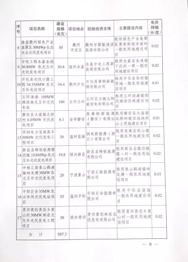 浙江2017年度及2018年度(部分)普通地面光伏電站指標(biāo)發(fā)布