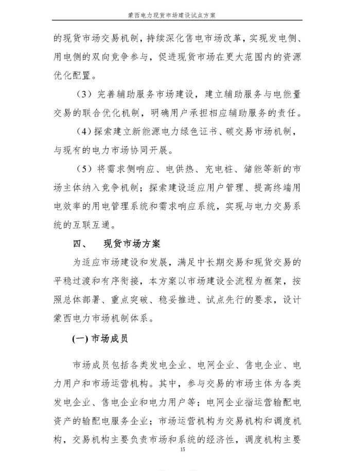 按照國家發(fā)改委、能源局印發(fā)《關(guān)于開展電力現(xiàn)貨市場建設(shè)試點(diǎn)工作的通知》(發(fā)改辦能源[2017]1453號)文件要求,蒙西地區(qū)被確定為現(xiàn)貨市場建設(shè)試點(diǎn)單位。為貫徹落實國家電力體制改革精神,適應(yīng)市場發(fā)展需要,內(nèi)蒙古電力多邊市場全面啟動電力現(xiàn)貨市場試點(diǎn)建設(shè)工作,目前已經(jīng)形成《蒙西電力現(xiàn)貨市場建設(shè)試點(diǎn)方案(征求意見稿)