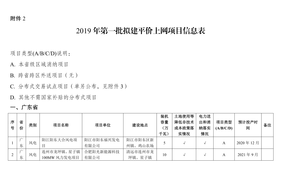 5月22日,國家發(fā)改委辦公廳、國家能源局綜合司發(fā)布通知,公布2019年第一批風(fēng)電、光伏發(fā)電平價上網(wǎng)項目。共有16個。ㄗ灾螀^(qū)、直轄市)能源主管部門向國家能源局報送了2019年第一批風(fēng)電、光伏發(fā)電平價上網(wǎng)項目名單,總裝機規(guī)模2076萬千瓦。國家發(fā)展改革委辦公廳 國家能源局綜合司關(guān)于公布2019年第一批風(fēng)電、光伏