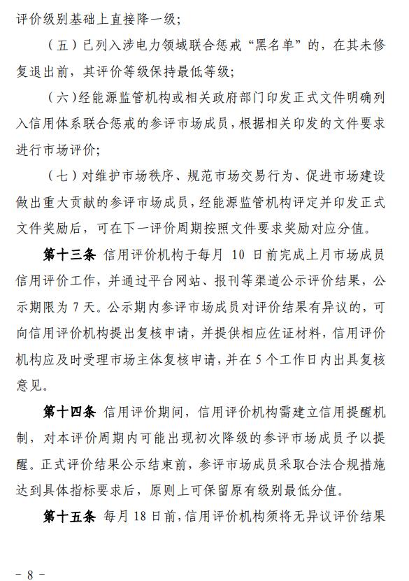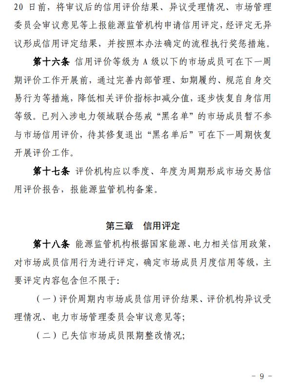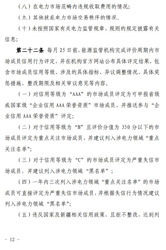 9月22日,國家能源局新疆監(jiān)管辦印發(fā)《新疆電力市場交易信用評價(jià)及評定管理辦法(試行)》的通知,依據(jù)《電力法》等法律法規(guī),結(jié)合新疆實(shí)際,制定本管理辦法。本管理辦法適用于新疆電力市場成員包括各類發(fā)電企業(yè)、售電公司(含擁有配電網(wǎng)運(yùn)營權(quán)的售電公司、獨(dú)立的售電公司)、電網(wǎng)企業(yè)(含各局域電網(wǎng)企業(yè)、躉售縣(團(tuán)場