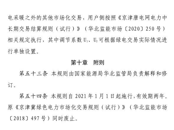 從華北監(jiān)管局獲悉:為推進(jìn)京津冀地區(qū)可再生能源市場(chǎng)化交易的有序開(kāi)展,進(jìn)一步規(guī)范可再生能源市場(chǎng)化交易工作,華北監(jiān)管局會(huì)同京津冀三。ㄊ校┱鞴懿块T(mén)及有關(guān)單位修訂了《京津冀綠色電力市場(chǎng)化交易規(guī)則》(以下簡(jiǎn)稱(chēng)《綠電交易規(guī)則》),并制定了《京津冀綠色電力市場(chǎng)化交易優(yōu)先調(diào)度實(shí)施細(xì)則(試行)》(以下簡(jiǎn)稱(chēng)《優(yōu)先