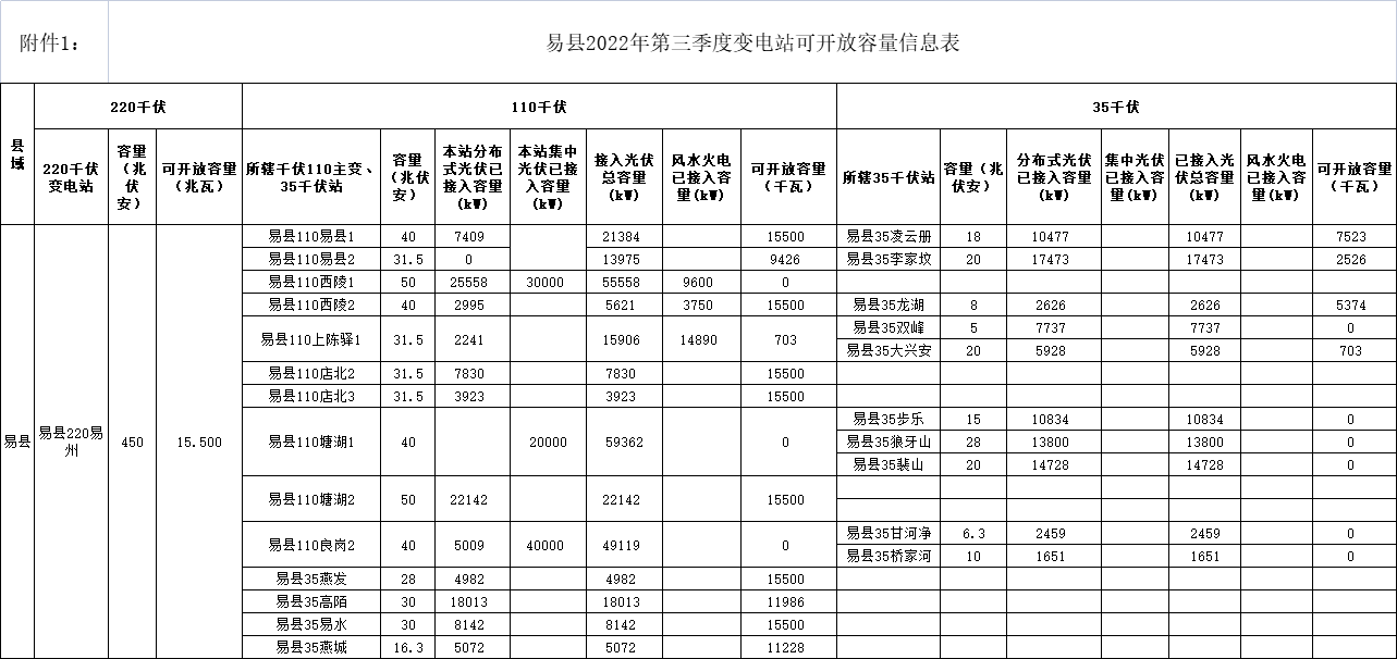 8月4日,河北省易縣人民政府印發(fā)《易縣分布式光伏可開放容量信息公開發(fā)布辦法(試行)》,文件決定自2022年7月份起,對全縣變電站、10千伏線路分布式光伏可開放容量進行全面分析和評估測算,并每季度定期根據(jù)易縣分布式光伏累計并網(wǎng)容量進行動態(tài)更新220千伏及以下電網(wǎng)設(shè)備的分布式光伏可開放容量,通過相關(guān)政府