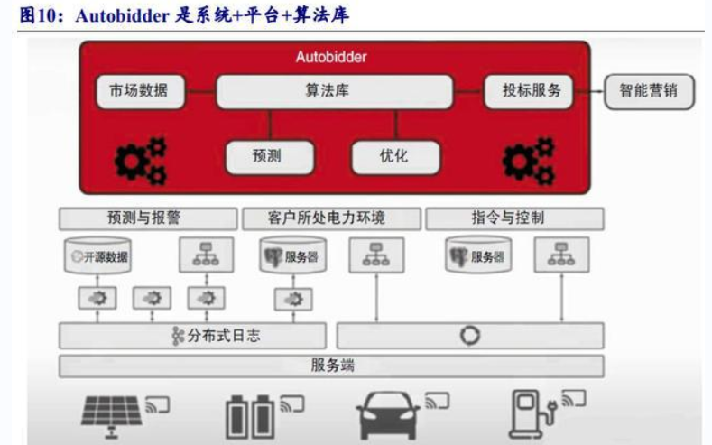 憑借高超的資源聚合能力和多元商業(yè)模式,Next Kraftwerke營業(yè)收入實(shí)現(xiàn)較快增長。 截至2018年,NextKraftwerke管理了超過6854個(gè)客戶資產(chǎn),包括生物質(zhì)發(fā)電裝置、熱電聯(lián)產(chǎn)、水電站、靈活可控負(fù)荷、風(fēng)能和太陽能光伏電站等,容量超5987MW。NextKraftwerke管理的單個(gè)客戶資源平均只有0.87MW,單個(gè)資源規(guī)模偏小且零散,調(diào)度和交易難度大、成本高,很難通過市場交易獲利。NextKraftwerke公司通過其高超的資源聚合能力和創(chuàng)新的商業(yè)模式,營業(yè)收入保持較快增速。 ![]() 2.2、Autobidder:特斯拉新能源產(chǎn)業(yè)生態(tài)的樞紐 特斯拉形成“車+樁+光+儲+荷+智”的新能源產(chǎn)業(yè)生態(tài)閉環(huán)。根據(jù)《特斯拉新能源生態(tài)閉環(huán)》總結(jié),特斯拉在電動汽車業(yè)務(wù)取得突破后,不斷進(jìn)軍儲能、發(fā)電、虛擬電廠等新能源領(lǐng)域,初步構(gòu)建起“車+樁+光+儲+荷+智”的新能源閉環(huán)生態(tài)。 (1)“車+樁”組成特斯拉新能源生態(tài)體系的用能端,通過對車型布局、電池系統(tǒng)、充電網(wǎng)絡(luò)和充電技術(shù)的持續(xù)迭代優(yōu)化,特斯拉電動汽車和充電設(shè)備等產(chǎn)品受到市場廣泛認(rèn)可。 (2)“光+儲”組成特斯拉新能源生態(tài)體系的產(chǎn)能端,在“車+樁”的用能端率先取得突破的基礎(chǔ)上,特斯拉開始進(jìn)軍儲能項(xiàng)目開發(fā)、光伏和儲能設(shè)備制造、光伏發(fā)電運(yùn)營等領(lǐng)域,形成在產(chǎn)能端的光儲協(xié)同布局。 (3)“荷+智”組成特斯拉新能源生態(tài)體系的交易端,虛擬電廠智能平臺Autobidder實(shí)現(xiàn)了在交易端與公用電網(wǎng)的連接,成為特斯拉構(gòu)建新能源生態(tài)體系的基本依托。 ![]() ![]() Autobidder是系統(tǒng)+平臺+算法庫。 根據(jù)吳建軍等發(fā)表的《智慧能源管理平臺支撐需求側(cè)變革》一文,Autobidder不僅僅是電力交易的數(shù)字化軟件,特斯拉還賦予它分布式能源交易管理系統(tǒng)、虛擬電廠交易和控制平臺,以及開源復(fù)雜算法庫等更多涵義。 ![]() Autobidder是虛擬電廠實(shí)時(shí)交易和控制平臺。Autobidder可以在車輛、電池、光伏設(shè)備等特斯拉生態(tài)系統(tǒng)、甚至電網(wǎng)中自動調(diào)度能源電力,以實(shí)現(xiàn)高效的資源分配和最大的商業(yè)效益。 |