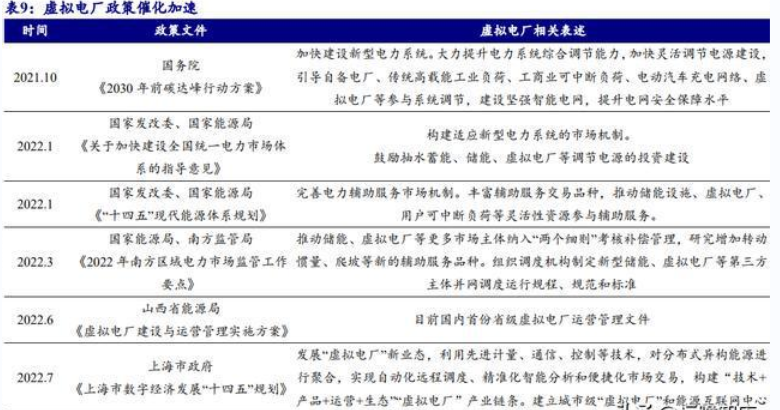 國(guó)內(nèi)虛擬電廠仍處于概念驗(yàn)證和試點(diǎn)示范階段,以合約型為主。 早期虛擬電廠示范項(xiàng)目多為合約型需求響應(yīng)類(lèi),直接參與電力市場(chǎng)交易的項(xiàng)目為數(shù)不多,仍需要政府補(bǔ)貼行業(yè)發(fā)展,典型如廣州市2021年6月發(fā)布的《廣州市虛擬電廠實(shí)施細(xì)則》。未來(lái)伴隨虛擬電廠在交易運(yùn)行規(guī)則、資源聚合范圍、新能源協(xié)調(diào)控制策略、調(diào)度算法等方面標(biāo)準(zhǔn)的統(tǒng)一,有望迎來(lái)較大的市場(chǎng)化發(fā)展空間。 ![]() 虛擬電廠頂層設(shè)計(jì)加速,首個(gè)省級(jí)方案落地。 2021年國(guó)務(wù)院發(fā)布的《2030年前碳達(dá)峰行動(dòng)方案》中提出,引導(dǎo)虛擬電廠參與新型電力系統(tǒng)靈活調(diào)節(jié)。此后虛擬電廠政策催化顯著加速。2022年6月23日,山西省能源局發(fā)布《虛擬電廠建設(shè)與運(yùn)營(yíng)管理實(shí)施方案》,為目前國(guó)內(nèi)首份省級(jí)虛擬電廠運(yùn)營(yíng)管理文件。 ![]() 國(guó)內(nèi)虛擬電廠建設(shè)從合約型向市場(chǎng)型邁進(jìn)。 2019 年底,冀北虛擬電廠通過(guò)參與調(diào)峰市場(chǎng)獲利。2020 年底,山東開(kāi)展虛擬電廠參與的現(xiàn)貨能量市場(chǎng)、備用容量市場(chǎng)和輔助服務(wù)市場(chǎng)的交易,標(biāo)志著國(guó)內(nèi)虛擬電廠建設(shè)逐步從單一市場(chǎng)邁向參與聯(lián)合電力市場(chǎng)、多種電力市場(chǎng)。2022年5月20日,部署于國(guó)電投深圳能源的虛擬電廠平臺(tái)發(fā)出指令,調(diào)度尚呈新能源蛤地智能充電站將50千瓦時(shí)電量從0時(shí)轉(zhuǎn)移至4時(shí),根據(jù)5月26日廣東電力現(xiàn)貨市場(chǎng)數(shù)據(jù),深圳能源通過(guò)此次試驗(yàn)獲利,平均度電收益0.274元,成為國(guó)內(nèi)首個(gè)虛擬電廠調(diào)度用戶負(fù)荷參與電力現(xiàn)貨市場(chǎng)盈利的案例。 虛擬電廠2030年投資規(guī)模有望達(dá)到千億級(jí)。 根據(jù)封紅麗在《虛擬電廠市場(chǎng)發(fā)展前景及實(shí)踐思考》一文中的測(cè)算,從可調(diào)負(fù)荷需求看,按照在全國(guó)構(gòu)建不少于最大負(fù)荷5%的可調(diào)節(jié)負(fù)荷資源庫(kù),預(yù)計(jì)到2025年,需構(gòu)建可調(diào)負(fù)荷資源庫(kù)約7850萬(wàn)千瓦;到2030年底,由于可再生能源占比提高,需構(gòu)建的可調(diào)負(fù)荷資源響應(yīng)能力提高,按6%計(jì)算屆時(shí)資源庫(kù)容量約為10620萬(wàn)千瓦?紤]項(xiàng)目可行性,虛擬電廠可構(gòu)建的可調(diào)資源潛力按照響應(yīng)能力需求容量、投資成本按1000元/千瓦計(jì)算,預(yù)計(jì)2025年、2030年,虛擬電廠投資規(guī)模分別至少約為785億元、1062億元。 ![]() 競(jìng)爭(zhēng)格局:多領(lǐng)域玩家紛紛布局,電網(wǎng)信息化企業(yè)占據(jù)主流。 虛擬電廠因可觀行業(yè)發(fā)展?jié)摿,吸引了眾多領(lǐng)域企業(yè)入局。 根據(jù)36氪整理,主要包括三類(lèi)玩家,一是電網(wǎng)信息化企業(yè),依托在電力、通信領(lǐng)域經(jīng)驗(yàn)技術(shù)和電網(wǎng)公司豐富的信息通信資源,具有開(kāi)展虛擬電廠業(yè)務(wù)的先天優(yōu)勢(shì),成為當(dāng)前示范項(xiàng)目主力,如國(guó)電南瑞、國(guó)網(wǎng)信通、遠(yuǎn)光軟件等;二是智慧能源和IT領(lǐng)域方案提供商,主要依托能源領(lǐng)域系統(tǒng)開(kāi)發(fā)、控制計(jì)量、數(shù)字化轉(zhuǎn)型等技術(shù)儲(chǔ)備實(shí)現(xiàn)虛擬電廠系統(tǒng)優(yōu)化,通過(guò)與能源領(lǐng)域企業(yè)合作實(shí)現(xiàn)資源整合與業(yè)務(wù)拓展,如恒實(shí)科技等;三是新能源、新型儲(chǔ)能等領(lǐng)域企業(yè)也開(kāi)展虛擬電廠技術(shù)研發(fā)和布局,如國(guó)能日新等。 |