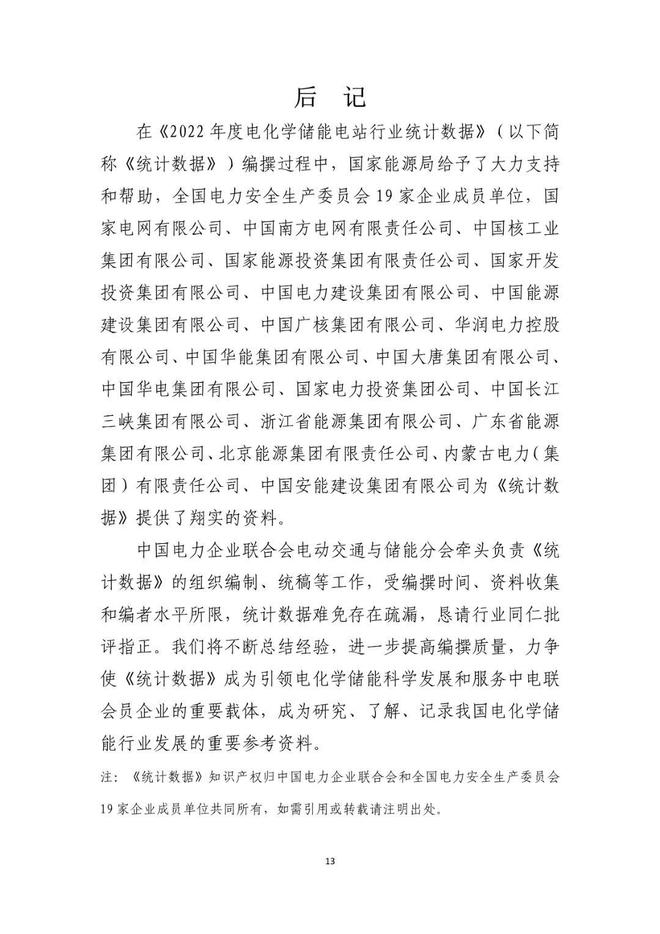 2023年3月29日,在2023中國(guó)儲(chǔ)能大會(huì)上,依托國(guó)家能源局批準(zhǔn)建設(shè)的國(guó)家電化學(xué)儲(chǔ)能電站安全監(jiān)測(cè)信息平臺(tái),中國(guó)電力企業(yè)聯(lián)合會(huì)發(fā)布了《2022年度電化學(xué)儲(chǔ)能電站行業(yè)統(tǒng)計(jì)數(shù)據(jù)》(簡(jiǎn)稱《統(tǒng)計(jì)數(shù)據(jù)》)。《統(tǒng)計(jì)數(shù)據(jù)》由中電聯(lián)電動(dòng)交通與儲(chǔ)能分會(huì)負(fù)責(zé)組織編制、統(tǒng)稿!督y(tǒng)計(jì)數(shù)據(jù)》期待成為支持電化學(xué)儲(chǔ)能科學(xué)發(fā)展和服務(wù)中國(guó)電力企業(yè)聯(lián)合
