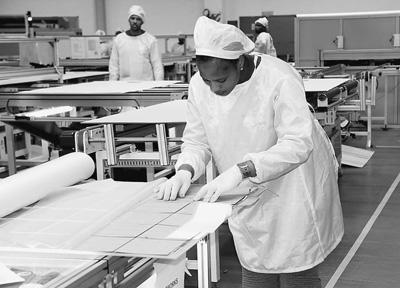 南非雇員在晶科能源公司南非太陽(yáng)能板生產(chǎn)線(xiàn)上工作。本報(bào)記者 倪濤攝
