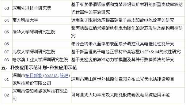 根據(jù)《深圳市科技研發(fā)資金管理辦法》、《深圳市科技計劃項目管理辦法》有關(guān)規(guī)定,市科技創(chuàng)新委員會擬對2014年市戰(zhàn)略性新興產(chǎn)業(yè)專項第五批共177個項目進(jìn)行資助,現(xiàn)在深圳市科技創(chuàng)新委員會網(wǎng)站予以公示,向社會征求意見。任何單位和個人對公布的項目持有異議的,請在公布之日起10天內(nèi)以書面形式(注明通訊地址和聯(lián)系方式)向我委反映。單位提出異議的,應(yīng)當(dāng)在異議材料上加蓋本單位公章;個人提出異議的,應(yīng)當(dāng)在異議材料上簽署本人真實姓名(姓名不能打印),我委對異議人身份和反映情況予以保密。為保證異議處理客觀、公正、公平,保護(hù)候選單位的合法權(quán)益,凡匿名提出異議的,我委將不予受理。 異議受理處室:深圳市科技創(chuàng)新委員會綜合計劃處 投訴聯(lián)系電話:82001935 傳 真:82002235 地 址:深圳市福田區(qū)福中三路市民中心C區(qū)五樓 郵 編:518035 附件: 1. 深圳市生物產(chǎn)業(yè)發(fā)展專項資金2014年第五批扶持計劃匯總表 2. 深圳市互聯(lián)網(wǎng)產(chǎn)業(yè)發(fā)展專項資金2014年第五批扶持計劃匯總表 3. 深圳市新能源產(chǎn)業(yè)發(fā)展專項資金2014年第五批扶持計劃匯總表 4. 深圳市新材料產(chǎn)業(yè)發(fā)展專項資金2014年第五批扶持計劃匯總表 5. 深圳市新一代信息技術(shù)產(chǎn)業(yè)發(fā)展專項資金2014年第五批扶持計劃匯總表 深圳市科技創(chuàng)新委員會 2014年11月6日 附件3:深圳市新能源產(chǎn)業(yè)發(fā)展專項資金2014年第五批扶持計劃匯總表 ![]() ![]() ![]() |