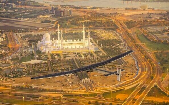 2015年3月8日,不用一滴燃料!全球最大太陽能飛機(jī)——陽光動力2號,將于明天從海灣地區(qū)啟程,開始環(huán)球飛行。機(jī)翼安有1.7萬塊太陽能電池板,翼展72米,重量僅相當(dāng)于一輛汽車。飛行5個月,降落12次,在重慶、南京停留兩站。期間約有40位工作人員負(fù)責(zé)控制它的飛行。 將在中國停