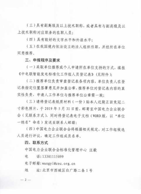 太陽能發(fā)電網訊(編輯/秋石):日前,中國電力企業(yè)聯(lián)合會標準化管理中心下發(fā)《中電聯(lián)標準化管理中心關于成立智能發(fā)電標準化工作組并征集工作組成員的通知》,決定成立智能發(fā)電標準化工作組,并在行業(yè)內公開征集工作組成員。 通知表示,該標準化工作組的成立,是為了提高發(fā)電的自動化水平,推動云計算、大數據、物聯(lián)網、移動互聯(lián)網、人工智能等新一代信息技術在發(fā)電領域的應用與智能發(fā)電技術進步及產業(yè)發(fā)展。工作組的主要職責包括,研究制定智能發(fā)電標準體系,協(xié)調推進智能發(fā)電標準體系建設,指導智能發(fā)電標準實施,開展智能發(fā)電國際標準化工作。 通知全文如下: ![]() ![]() ![]() ![]() ![]() |