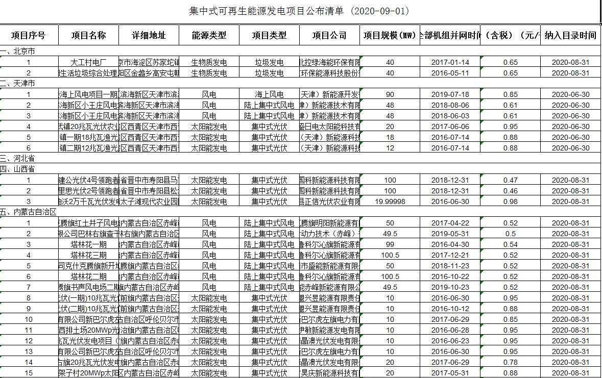 關(guān)于公布2020年第三批可再生能源發(fā)電補(bǔ)貼項(xiàng)目清單的公告根據(jù)《財(cái)政部 國家發(fā)展改革委 國家能源局關(guān)于促進(jìn)非水可再生能源發(fā)電健康發(fā)展的若干意見》(財(cái)建〔2020〕4號)、《財(cái)政部 國家發(fā)展改革委 國家能源局關(guān)于印發(fā)的通知》(財(cái)建〔2020〕5號)和《財(cái)政部辦公廳關(guān)于開展可再生能源發(fā)電補(bǔ)貼項(xiàng)目清單審核有關(guān)工作