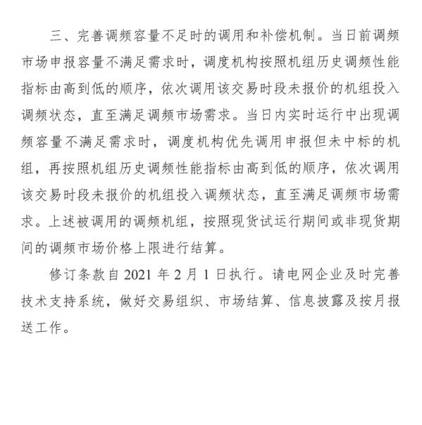 山西《關(guān)于完善電力調(diào)頻輔助服務(wù)市場有關(guān)規(guī)則》征求意見