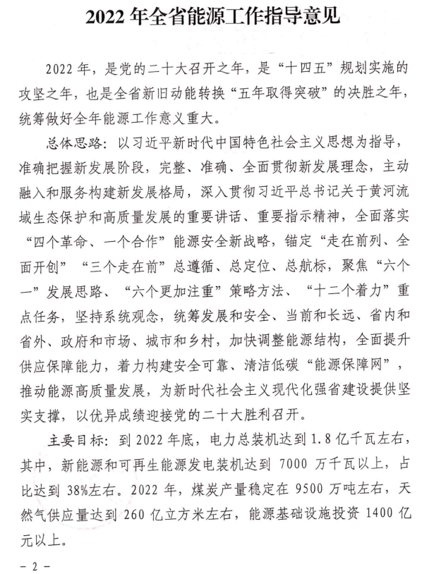 為統(tǒng)籌做好2022年全省能源工作,加快推動新時代能源行業(yè)高質(zhì)量發(fā)展,山東省能源局研究制定了《2022年全省能源工作指導(dǎo)意見》。全文如下: