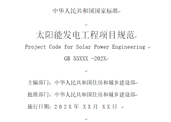 據(jù)住建部官網(wǎng),近日,住房城鄉(xiāng)建設(shè)部辦公廳印發(fā)關(guān)于工程建設(shè)強(qiáng)制性國家規(guī)范《太陽能發(fā)電工程項(xiàng)目規(guī)范(征求意見稿)》公開征求意見的通知,為促進(jìn)太陽能發(fā)電工程高質(zhì)量發(fā)展,規(guī)范太陽能發(fā)電工程建設(shè)與運(yùn)行管理,保障工程安全,保護(hù)生態(tài)環(huán)境,促進(jìn)太陽能資源安全開發(fā)和高效利用 ,經(jīng)組織水電水利規(guī)劃設(shè)計(jì)總院等單位起草了工程建設(shè)強(qiáng)制性國家規(guī)范《太陽能發(fā)電工程項(xiàng)目規(guī)范(征求意見稿)》,F(xiàn)向社會(huì)公開征求意見,反饋截止時(shí)間為2023年10月8日。 意見稿指出,太陽能發(fā)電工程必須執(zhí)行本規(guī)范。太陽能發(fā)電工程建設(shè)所采用的技術(shù)方法和措施是否符合本規(guī)范要求,由相關(guān)責(zé)任主體判定。其中,創(chuàng)新性的技術(shù)方法和措施,應(yīng)進(jìn)行論證并符合本規(guī)范中有關(guān)性能的要求。 全文如下: ![]() 目 次 1 總 則 2 基 本 規(guī) 定 2.1 規(guī)模與布局 2.2 建設(shè)要求 2.3 運(yùn)行維護(hù) 3 光伏發(fā)電工程 3.1 一般規(guī)定 3.2 光伏陣列 3.3 電氣系統(tǒng) 4 太陽能熱發(fā)電工程 4.1 一般規(guī)定 4.2 聚光集熱系統(tǒng) 4.3 儲換熱系統(tǒng) 4.4 發(fā)電島系統(tǒng) 4.5 電氣系統(tǒng)