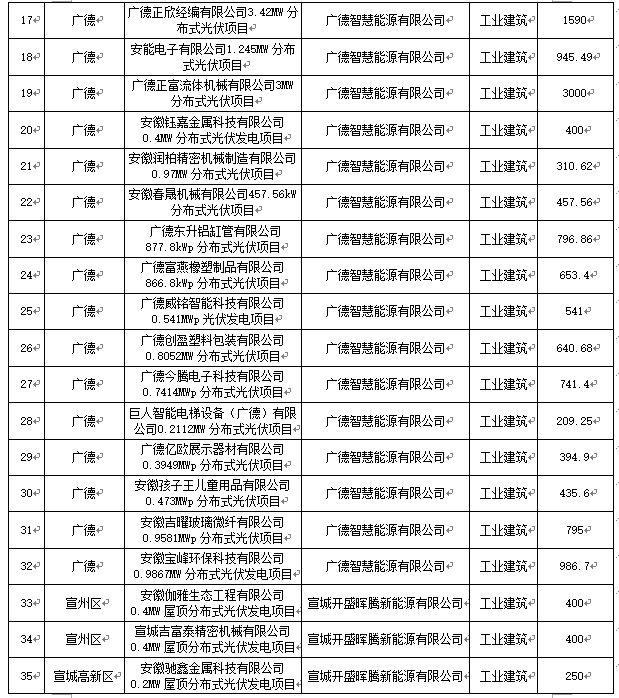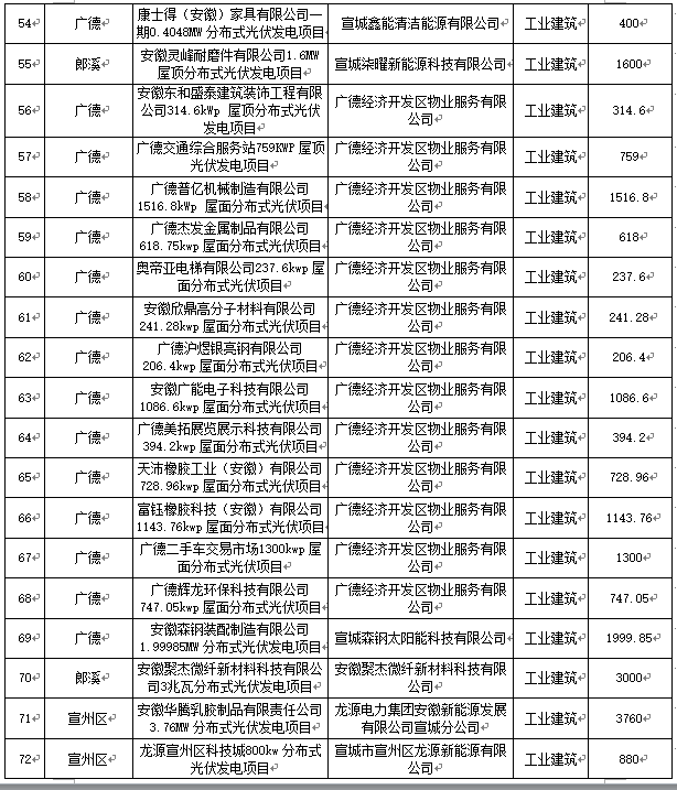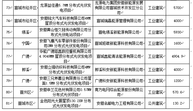 10月7日,安徽宣城市住建局公示了擬列入第三批光伏建筑應(yīng)用城市試點(diǎn)示范項(xiàng)目清單,共計(jì)81個(gè)分布式光伏項(xiàng)目,總裝機(jī)容量139.13256MW。