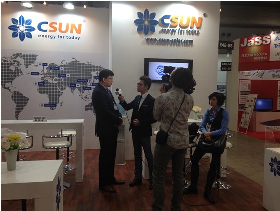 展會(huì)期間,蔡志方先生還接受了歐洲媒體的采訪,讓越來越多的歐洲及東南亞客戶更深入地了解中電光伏及其產(chǎn)品特性,同時(shí)也讓客戶了解到了中電光伏無限的發(fā)展?jié)撃。另外,我?guó)駐日參贊也親臨中電光伏展臺(tái)現(xiàn)場(chǎng),與中電光伏銷售團(tuán)隊(duì)親切交談,鼓勵(lì)中電光伏繼續(xù)推出更多、更好的高新技術(shù)產(chǎn)品,讓全世界更多的人能夠享受到清潔能源,讓世界了解中電光伏,讓中電光伏走向世界!