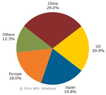 根據NPD Solarbuzz最新出版的組件追蹤季度報告Module Tracker Quarterly顯示,領先的中國太陽能光伏組件制造商在2014年二季度的組件出貨量達到5.2GW,比一季度增加了26%,占到了全球前20大組件廠商總出貨量的近四分之三(71%)。 N