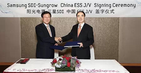 11月4日,陽光電源與三星SDI株式會(huì)社在韓國釜山簽訂了合資合約,雙方將建立合資公司,從事電力用鋰離子電池包、儲(chǔ)能變流器及儲(chǔ)能系統(tǒng)的開發(fā)、生產(chǎn)和銷售,共同開拓國內(nèi)外電力儲(chǔ)能市場(chǎng)。