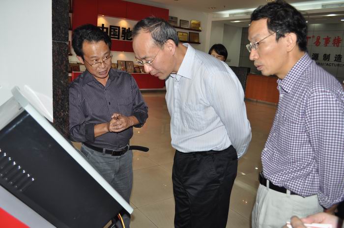 最后,肖司長一行參觀了易事特產(chǎn)品展廳,當(dāng)了解到易事特產(chǎn)品已經(jīng)成功應(yīng)用于“神舟號”系列飛船、“嫦娥號”探月衛(wèi)星、北京奧運會、廣州亞運會、深圳大運會、青藏鐵路、中央政府信息化辦公采購、金融系統(tǒng)、電網(wǎng)系統(tǒng)等重大工程項目時,肖司長忍不住伸手摸摸這高科技產(chǎn)品,同時,在徐海波博士的介紹下,在太陽能發(fā)電箱前詳細了解工作原理及發(fā)電情況。
