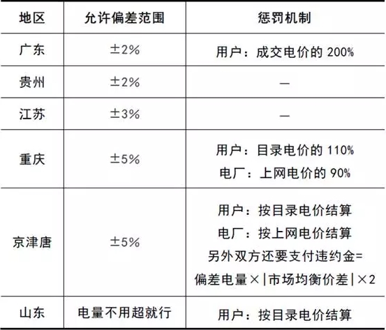 由于沒(méi)有用戶或是電廠能夠100%地預(yù)測(cè)準(zhǔn)自己下個(gè)周期能夠用/發(fā)多少電,因此,一般來(lái)說(shuō),交易中心會(huì)允許企業(yè)出現(xiàn)一定的誤差。如果預(yù)測(cè)的誤差在交易中心允許的范圍內(nèi),那企業(yè)就不會(huì)受到任何處罰,也就是和正常交易一樣。但如果預(yù)測(cè)的誤差超出了交易中心允許的范圍,那交易中心在給企業(yè)結(jié)算電費(fèi)的時(shí)候,就會(huì)從里面扣除一筆懲罰金。偏差電量的值越大,罰款數(shù)額也就越高。而這筆錢將用來(lái)補(bǔ)償在輔助服務(wù)市場(chǎng)上做出貢獻(xiàn)的公司。具體看來(lái),各省對(duì)電量偏差的允許范圍各有不同,但一般不會(huì)超過(guò)±5%。