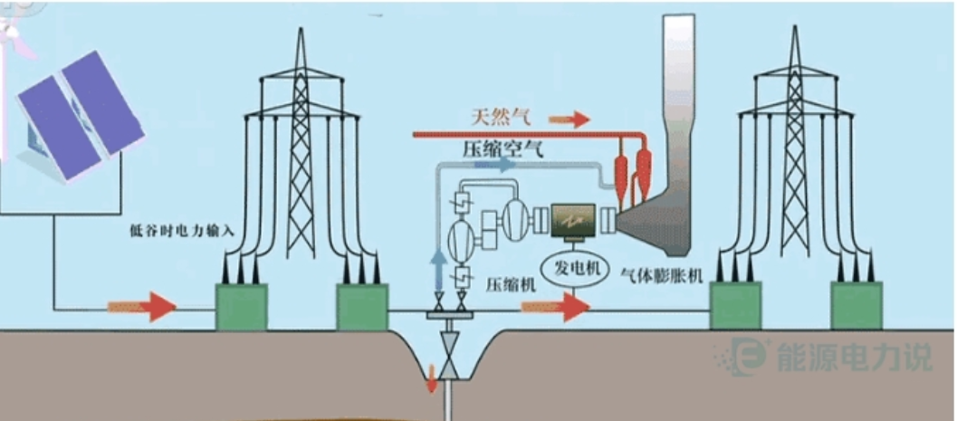 在新型電力系統(tǒng)中,儲(chǔ)能將成為至關(guān)重要的一環(huán),是新能源消納以及電網(wǎng)安全保障必要保障,在發(fā)電側(cè)、電網(wǎng)側(cè)、用電側(cè)都會(huì)得到廣泛的應(yīng)用。國(guó)內(nèi)市場(chǎng),新能源配儲(chǔ)、獨(dú)立儲(chǔ)能等落地形式推動(dòng)儲(chǔ)能需求指數(shù)增長(zhǎng)。在市場(chǎng)需求爆發(fā)以及政策鼓勵(lì)的雙重推動(dòng)下,成熟的抽水蓄能、鋰電儲(chǔ)能呈現(xiàn)爆發(fā)性增長(zhǎng),壓縮空氣儲(chǔ)能、液流儲(chǔ)能等新型長(zhǎng)時(shí)儲(chǔ)能技術(shù)也進(jìn)入了發(fā)展快車(chē)道。 壓縮空氣儲(chǔ)能,具有規(guī)模大、壽命長(zhǎng)、建設(shè)周期短(12-18個(gè)月)、站址布局相對(duì)靈活(占地面積100畝以?xún)?nèi))等優(yōu)點(diǎn),此外各地百兆瓦級(jí)壓縮空氣儲(chǔ)能項(xiàng)目相繼落地,讓這種以空氣為能量存儲(chǔ)介質(zhì)的物理儲(chǔ)能方式,成為頗具發(fā)展?jié)摿Φ男滦蛢?chǔ)能技術(shù)路徑之一。 “空氣充電寶” 以空氣作為能源存儲(chǔ)的介質(zhì),被稱(chēng)為“空氣充電寶”,壓縮空氣儲(chǔ)能是如何工作的呢? 當(dāng)電力過(guò)剩時(shí),將空氣壓縮儲(chǔ)存到地下儲(chǔ)氣洞穴里(洞穴可以是鹽穴、報(bào)廢礦井、儲(chǔ)氣罐、山洞、過(guò)期油氣井、新建儲(chǔ)氣井等),將電能轉(zhuǎn)化為壓縮空氣勢(shì)能。當(dāng)需要用電時(shí),高壓空氣經(jīng)過(guò)加熱,進(jìn)入膨脹機(jī),變成常壓的空氣,在此過(guò)程中帶動(dòng)發(fā)電機(jī)發(fā)電,空氣壓縮勢(shì)能轉(zhuǎn)化成電能輸出。 ![]() 壓縮空氣儲(chǔ)能工作原理 壓縮空氣儲(chǔ)能是20世紀(jì)50年代發(fā)展起來(lái)的儲(chǔ)能技術(shù)。世界上第一座商用壓縮空氣儲(chǔ)能電站誕生于1978年的德國(guó),它的壓縮空氣儲(chǔ)藏室,在地下600米的鹽穴里。 國(guó)內(nèi)壓縮空氣儲(chǔ)能蓄勢(shì)待發(fā) 截至2022年9月底,中國(guó)已投運(yùn)電力儲(chǔ)能項(xiàng)目累計(jì)裝機(jī)規(guī)模50.3GW,裝機(jī)規(guī)模最大的是抽水蓄能,電化學(xué)儲(chǔ)能緊隨其后,新型儲(chǔ)能項(xiàng)目累計(jì)裝機(jī)規(guī)模6663.4MW,其中壓縮空氣儲(chǔ)能在新型儲(chǔ)能中的占比是2.9%,裝機(jī)規(guī)模約193.24MW。 《“十四五”新型儲(chǔ)能發(fā)展實(shí)施方案》,將百兆瓦級(jí)壓縮空氣儲(chǔ)能技術(shù)列入“十四五”新型儲(chǔ)能核心技術(shù)裝備攻關(guān)重點(diǎn)方向之一。我國(guó)壓縮空氣儲(chǔ)能經(jīng)過(guò)十多年的發(fā)展,示范項(xiàng)目規(guī)模從千瓦級(jí)發(fā)展到百兆瓦級(jí),到2022年第四季度出出現(xiàn)了吉瓦級(jí)壓縮空氣儲(chǔ)能備案項(xiàng)目。 2013年在河北廊坊建設(shè)首個(gè)兆瓦級(jí)示范項(xiàng)目,項(xiàng)目規(guī)模1.5MW,系統(tǒng)效率達(dá)到了52.1%;2021年10月,貴州畢節(jié)壓縮空氣儲(chǔ)能示范項(xiàng)目正式并網(wǎng)發(fā)電,項(xiàng)目規(guī)模10MW/40MWh,系統(tǒng)額定效率為60.2%;2021年12月。首臺(tái)百兆瓦壓縮空氣儲(chǔ)能?chē)?guó)家示范項(xiàng)目在河北省張家口落地,項(xiàng)目規(guī)模為100MW/400MWh,系統(tǒng)設(shè)計(jì)效率70.4%;2022年5月,金壇鹽穴壓縮空氣儲(chǔ)能?chē)?guó)家試驗(yàn)示范項(xiàng)目投運(yùn),標(biāo)志著世界首座非補(bǔ)燃?jí)嚎s空氣儲(chǔ)能電站正式投入商業(yè)運(yùn)行,項(xiàng)目規(guī)模60MW/300MWh,轉(zhuǎn)換效率達(dá)60%。 能源電力說(shuō)根據(jù)公開(kāi)數(shù)據(jù),不完全統(tǒng)計(jì)了山東、河南、河北、江蘇、浙江、廣東等12省備案、簽約、在建、投運(yùn)壓縮空氣儲(chǔ)能項(xiàng)目合計(jì)35個(gè);其中25個(gè)有公開(kāi)規(guī)模數(shù)據(jù),這25個(gè)項(xiàng)目合計(jì)規(guī)模已超8.2GW,壓縮空氣儲(chǔ)能頗有蓄勢(shì)待發(fā)的發(fā)展勢(shì)頭。 儲(chǔ)能時(shí)長(zhǎng)均在4小時(shí)以上,其中4h項(xiàng)目9個(gè),6h項(xiàng)目6個(gè),8h項(xiàng)目5個(gè),5h項(xiàng)目4個(gè),10h項(xiàng)目1個(gè)。 山東省已出現(xiàn)吉瓦級(jí)備案項(xiàng)目,如中電建肥城5×300MW/1800MWh鹽穴壓縮空氣儲(chǔ)能項(xiàng)目、嶧城區(qū)1000MW/5000MWh壓縮空氣儲(chǔ)能項(xiàng)目。 根據(jù)現(xiàn)階段地面系統(tǒng)的壓力參數(shù),鹽穴壓縮空氣儲(chǔ)能能一般埋深在500-1100m,在有鹽穴的地方可以利用鹽穴,沒(méi)有鹽穴的地方依靠人工造穴,地質(zhì)限制小。從統(tǒng)計(jì)的35個(gè)壓氣蓄能項(xiàng)目來(lái)看,地下儲(chǔ)氣洞穴除了鹽穴,山東滕州曹莊煤礦100MW先進(jìn)壓縮空氣儲(chǔ)能示范項(xiàng)目、山西基于煤礦巷道壓縮空氣儲(chǔ)能發(fā)電系統(tǒng)等多個(gè)項(xiàng)目利用廢棄煤礦巷道作為儲(chǔ)氣庫(kù)。 在統(tǒng)計(jì)的項(xiàng)目中,32個(gè)項(xiàng)目已公開(kāi)項(xiàng)目單位,參與單位眾多。華能集團(tuán)、國(guó)家電投集團(tuán)、國(guó)家能源集團(tuán)、大唐集團(tuán)、華電集團(tuán)、電建集團(tuán)、中能數(shù)科、中儲(chǔ)國(guó)能、中鹽集團(tuán)、蘇鹽集團(tuán)、豫能控股、浙能集團(tuán)、巨人能源、啟迪控股、平頂山晟光儲(chǔ)能有限公司、國(guó)源時(shí)代、河北建投、北京未來(lái)鄉(xiāng)村科技發(fā)展有限公司、泰捷瑞儲(chǔ)能技術(shù)公司等。 壓縮空