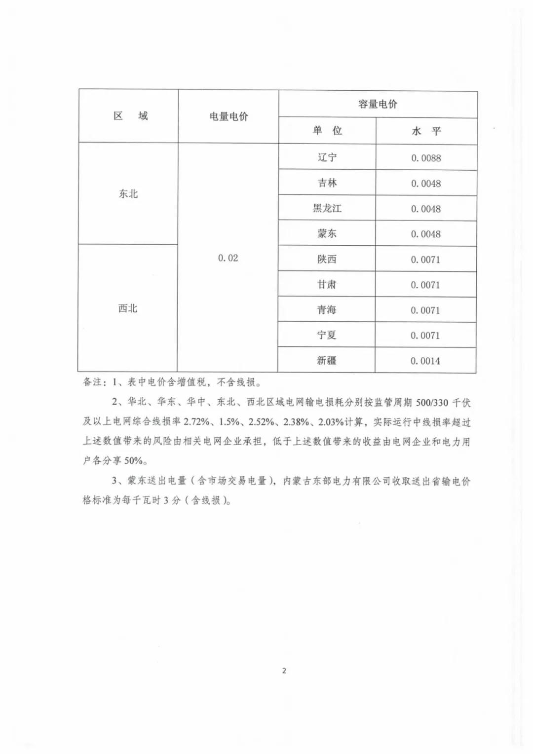 2018年2月,國家發(fā)展改革委印發(fā)《關(guān)于核定區(qū)域電網(wǎng)2018—2019年輸電價格的通知》(發(fā)改價格[2018]224號),規(guī)定了華北、華東、華中、東北、西北區(qū)域電網(wǎng)首個監(jiān)管周期(2018年1月1日—2019年12月31日)兩部制輸電價格水平,其中:電量電價隨區(qū)域電網(wǎng)實際交易結(jié)算電量