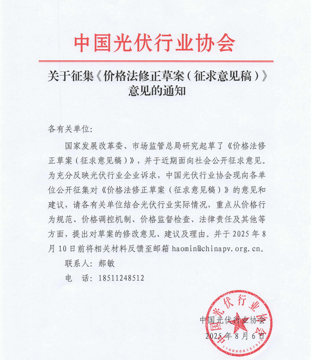 8月6日,中國(guó)光伏行業(yè)協(xié)會(huì)發(fā)布通知,面向光伏行業(yè)就國(guó)家發(fā)改委、市場(chǎng)監(jiān)管總局近日發(fā)布的《價(jià)格法修正草案(征求意見(jiàn)稿)》(意見(jiàn)稿原文附后)征求意見(jiàn)和建議。 中國(guó)光伏行業(yè)協(xié)會(huì)表示,光伏行業(yè)各有關(guān)單位可結(jié)合行業(yè)實(shí)際情況,重點(diǎn)從價(jià)格行為規(guī)范、價(jià)格調(diào)控機(jī)制、價(jià)格監(jiān)督檢查、法律責(zé)任及其他等方面提出對(duì)草案的修改意見(jiàn)、建議及理由。 協(xié)會(huì)通知原文如下: ![]() 附:中華人民共和國(guó)價(jià)格法修正草案(征求意見(jiàn)稿) 一、在第四條“國(guó)家支持和促進(jìn)公平、公開(kāi)、合法的市場(chǎng)競(jìng)爭(zhēng)”前,增加“價(jià)格工作堅(jiān)持中國(guó)共產(chǎn)黨的領(lǐng)導(dǎo)! 二、將第十四條第(一)項(xiàng)修改為:“相互串通,操縱市場(chǎng)價(jià)格;” 第(二)項(xiàng)修改為:“在依法降價(jià)處理鮮活商品、季節(jié)性商品、積壓商品等商品或者有正當(dāng)理由降價(jià)提供服務(wù)外,為了排擠競(jìng)爭(zhēng)對(duì)手或者獨(dú)占市場(chǎng),以低于成本的價(jià)格傾銷(xiāo),或者強(qiáng)制其他經(jīng)營(yíng)者按照其定價(jià)規(guī)則以低于成本的價(jià)格傾銷(xiāo);” 第(三)項(xiàng)修改為:“通過(guò)捏造散布漲價(jià)信息、囤積居奇、無(wú)正當(dāng)理由超出成本大幅漲價(jià)等,哄抬商品或者服務(wù)價(jià)格;” 第(五)項(xiàng)修改為:“提供相同商品或者服務(wù),對(duì)具有同等交易條件的消費(fèi)者或者其他經(jīng)營(yíng)者實(shí)行價(jià)格歧視;” 第(六)項(xiàng)修改為:“采取抬高等級(jí)、壓低等級(jí)、分解服務(wù)項(xiàng)目、減少服務(wù)內(nèi)容等手段收購(gòu)、銷(xiāo)售商品或者提供服務(wù),變相提高或者壓低價(jià)格;” 增加一項(xiàng)作為第(八)項(xiàng):“利用影響力、行業(yè)優(yōu)勢(shì)地位等,強(qiáng)制或者捆綁銷(xiāo)售商品、提供服務(wù)并收取價(jià)款;” 增加一項(xiàng)作為第(九)項(xiàng):“對(duì)經(jīng)營(yíng)場(chǎng)所內(nèi)經(jīng)營(yíng)者收取不合理費(fèi)用,或者對(duì)其交易價(jià)格進(jìn)行不合理限制、附加不合理?xiàng)l件;” 第(八)項(xiàng)修改為第(十)項(xiàng)。 增加一款作為第二款:“經(jīng)營(yíng)者不得利用數(shù)據(jù)和算法、技術(shù)以及規(guī)則等從事前款規(guī)定的不正當(dāng)價(jià)格行為! 三、將第二十一條修改為:“制定政府指導(dǎo)價(jià)、政府定價(jià),應(yīng)當(dāng)依據(jù)有關(guān)商品或者服務(wù)的社會(huì)平均成本和市場(chǎng)供求狀況、國(guó)民經(jīng)濟(jì)與社會(huì)發(fā)展要求以及社會(huì)承受能力,實(shí)行合理的購(gòu)銷(xiāo)差價(jià)、批零差價(jià)、地區(qū)差價(jià)和季節(jié)差價(jià);政府指導(dǎo)價(jià)、政府定價(jià)水平,可以通過(guò)制定作價(jià)辦法、規(guī)則等定價(jià)機(jī)制確定! 四、將第二十二條修改為:“政府價(jià)格主管部門(mén)和其他有關(guān)部門(mén)制定政府指導(dǎo)價(jià)、政府定價(jià),應(yīng)當(dāng)開(kāi)展價(jià)格調(diào)查、成本監(jiān)審或者調(diào)查,聽(tīng)取消費(fèi)者、經(jīng)營(yíng)者和有關(guān)方面的意見(jiàn)。有關(guān)單位應(yīng)當(dāng)如實(shí)反映情況,提供必需的賬簿、文件以及其他資料! 五、將第二十三條修改為:“制定關(guān)系群眾切身利益的公用事業(yè)價(jià)格、公共服務(wù)價(jià)格、自然壟斷經(jīng)營(yíng)的商品和服務(wù)價(jià)格等政府指導(dǎo)價(jià)、政府定價(jià)或者定價(jià)機(jī)制,應(yīng)當(dāng)廣泛征求消費(fèi)者、經(jīng)營(yíng)者和有關(guān)方面的意見(jiàn),論證其必要性、可行性。征求意見(jiàn)可以通過(guò)聽(tīng)證會(huì)、公開(kāi)征求社會(huì)意見(jiàn)、問(wèn)卷調(diào)查等方式實(shí)施! 六、將第二十九條修改為:“政府在糧食等重要農(nóng)產(chǎn)品的市場(chǎng)價(jià)格過(guò)低時(shí),可以實(shí)行支持性?xún)r(jià)格,并采取相應(yīng)的經(jīng)濟(jì)措施保證其實(shí)現(xiàn)! 七、將第三十四條第(一)項(xiàng)修改為:“進(jìn)入經(jīng)營(yíng)者的營(yíng)業(yè)場(chǎng)所或者其他有關(guān)場(chǎng)所進(jìn)行檢查,詢(xún)問(wèn)當(dāng)事人或者有關(guān)人員,并要求其提供證明材料和與價(jià)格違法行為有關(guān)的其他資料;” 第(二)項(xiàng)修改為:“查詢(xún)、復(fù)制與價(jià)格違法行為有關(guān)的賬簿、單據(jù)、憑證、文件、電子數(shù)據(jù)及其他資料,核對(duì)與價(jià)格違法行為有關(guān)的銀行資料,必要時(shí)可以對(duì)關(guān)系國(guó)計(jì)民生的重要商品和服務(wù)開(kāi)展成本調(diào)查;” 八、刪除第四十條第二款。 九、將第四十二條修改為:“經(jīng)營(yíng)者違反明碼標(biāo)價(jià)規(guī)定的,責(zé)令改正,沒(méi)收違法所得,可以并處五千元以下的罰款;情節(jié)嚴(yán)重的,可以并處五千元以上五萬(wàn)元以下的罰款。沒(méi)有違法所得,或者違法所得無(wú)法計(jì)算的,可以處以五千元以下的罰款;情節(jié)嚴(yán)重的,可以處以五千元以上五萬(wàn)元以下的罰款! 十、