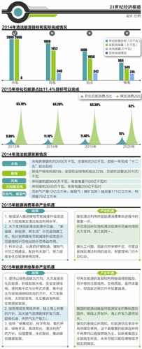![]() 12月25-26日,全國能源工作會(huì)議召開。國家發(fā)改委副主任、能源局局長(zhǎng)吳新雄在會(huì)上作題為“適應(yīng)新常態(tài)落實(shí)新舉措 努力推動(dòng)能源生產(chǎn)和消費(fèi)革命”的工作報(bào)告,提出2015年要推進(jìn)能源消費(fèi)革命、能源供給革命和能源技術(shù)革命。 在能源革命的新時(shí)代,大氣污染治理、煤電升級(jí)改造、能源國際合作、簡(jiǎn)政放權(quán)是2014年關(guān)鍵詞。2015年是“十二五”收官之年,也是“十三五”謀劃之年,推進(jìn)能源生產(chǎn)和消費(fèi)革命仍是能源領(lǐng)域的總基調(diào)。 1.非化石能源占比提至11.1% 受益于2014年水電增發(fā)等因素,非化石能源消費(fèi)占比大幅提升。國家能源局預(yù)計(jì)2014年非化石能源占一次能源消費(fèi)比重提升至11.1%,煤炭比重下降至64.2%。這是非化石能源占比首次達(dá)10%以上,同比提高1.3個(gè)百分點(diǎn)。 “十二五”以來,非化石能源占比在2011年曾一度不增反降。此后,在能源消費(fèi)總量控制、鼓勵(lì)清潔能源發(fā)展等利好環(huán)境下,非化石能源占比逐年提高。從目前的發(fā)展情況判斷,實(shí)現(xiàn)2015年占比11.4%的目標(biāo)問題不大,甚至有望超額完成規(guī)劃。 分能源品種看,2014年水電新增裝機(jī)約2000萬千瓦,總裝機(jī)約3億千瓦,提前一年完成“十二五”規(guī)劃目標(biāo);新投產(chǎn)核電機(jī)組5臺(tái),全國在運(yùn)核電機(jī)組達(dá)22臺(tái),總裝機(jī)容量達(dá)2010萬千瓦;風(fēng)電并網(wǎng)裝機(jī)超9000萬千瓦,年發(fā)電量1500 億千瓦時(shí);太陽能發(fā)電并網(wǎng)裝機(jī)達(dá)到3000萬千瓦,年發(fā)電量250億千瓦時(shí);生物質(zhì)能、地?zé)崮馨l(fā)電裝機(jī)超過920萬千瓦,發(fā)電量350億千瓦時(shí)。 根據(jù)國家中長(zhǎng)期規(guī)劃,到2020年非化石能源占比要達(dá)到15%,煤炭消費(fèi)比重控制在62%以內(nèi);2030年左右二氧化碳排放達(dá)到峰值,非化石能源占比達(dá)20%。 展望2015年乃至“十三五”期間,可再生能源的發(fā)展和利用將繼續(xù)得到鼓勵(lì)。21世紀(jì)宏觀研究院建議特別注意地?zé)、生物質(zhì)能發(fā)電,雖然體量小,但國家近期文件中反復(fù)強(qiáng)調(diào)。 |