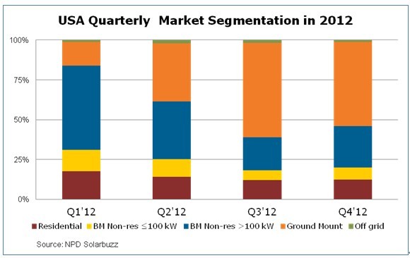 圖一、2012年北美光伏細(xì)分市場(chǎng)份額按季度劃分