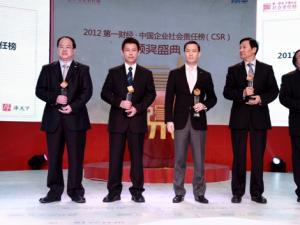 ”中國企業(yè)社會責任榜”由上海東方傳媒集團旗下財經(jīng)權威媒體第一財經(jīng)日報主辦,為目前中國企業(yè)社會責任領域的重要評比之一。2012中國企業(yè)社會責任榜年度主題為”仁商.厚澤天下”,旨在追求利益相關方的共享價值。專業(yè)評審委員會藉由分析企業(yè)在和諧關系、員工關懷、環(huán)境責任、社會公益、經(jīng)濟責任等五大面向之績效,全方面評選企業(yè)履行社會責任之能力。