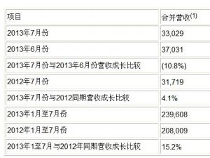 友達(dá)光電2013年7月份合并營(yíng)業(yè)額為新臺(tái)幣三百三十億二千九百萬(wàn)元,營(yíng)業(yè)額較6月份減少10.8%,較去年同期成長(zhǎng)4.1%。