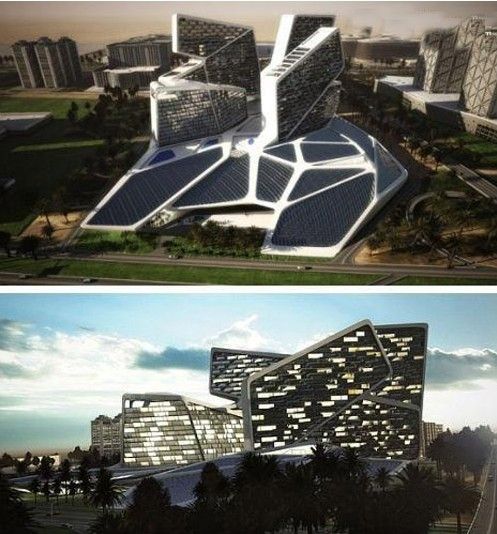 在迪拜的沙漠中,怎樣能在充分利用太陽(yáng)能發(fā)電的同時(shí),避免建筑物內(nèi)部過(guò)熱?一個(gè)解決方案是設(shè)計(jì)能給自己遮蔭的建筑。由Graft公司設(shè)計(jì)的垂直農(nóng)莊非常獨(dú)特,底部覆蓋太陽(yáng)能電池板,而塔樓則采用呈對(duì)角線的平板形,以減少下面的陽(yáng)光滲透。塔樓內(nèi)可以住人,而地下則有電影院、餐廳和商店。