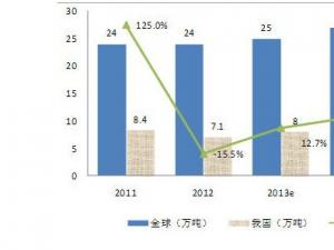圖1 2011-2014年我國多晶硅產量、增長率及全球多晶硅產量