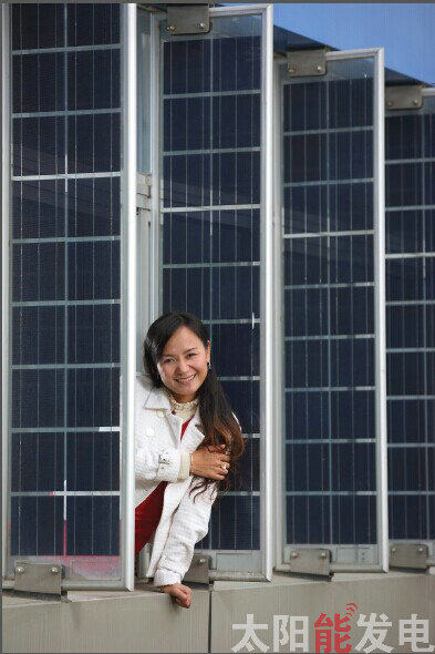 “云想衣裳花想容”,畫面使人聯(lián)想起李白的詩(shī)句。建筑因?yàn)榫G色而美,綠色因?yàn)楣夥砩,人因(yàn)橛辛顺绺呃砟疃x予了美更豐富的內(nèi)涵。作品生動(dòng)地詮釋了光伏遮陽(yáng)與光伏麗人的美。